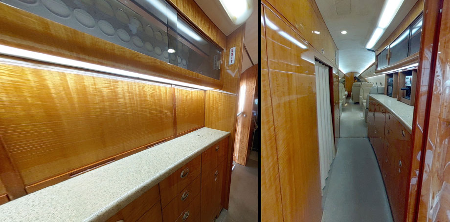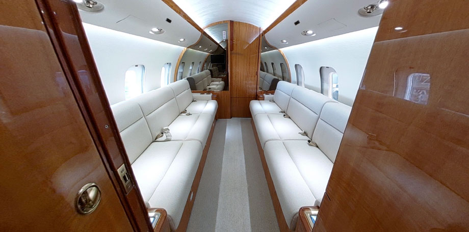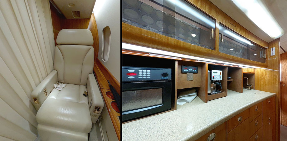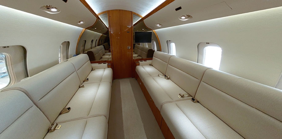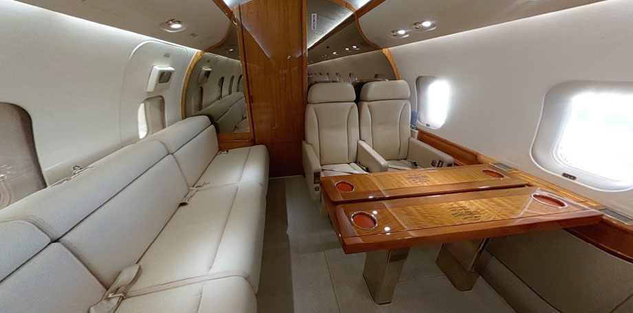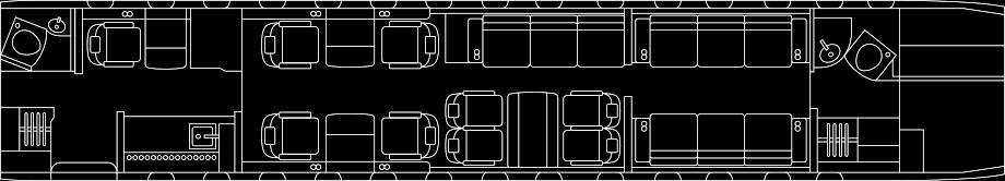 | Mid Cabin: | Four (4) Place Conference Grouping Opposite Three (3) Place Divan (2 Seats Certified for TTOL) |